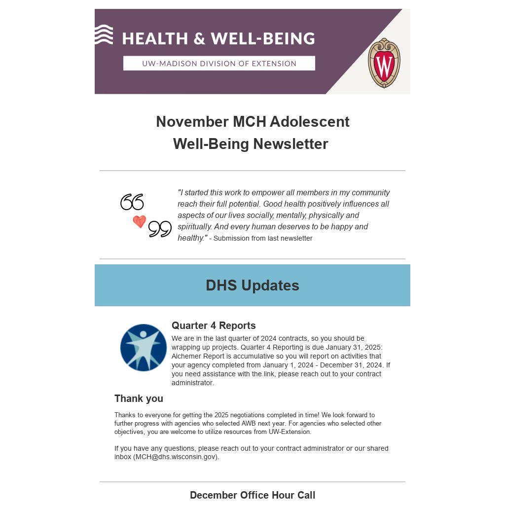 If you have any questions, please reach out to your contract administrator or our shared inbox (MCH@dhs.wisconsin.gov).