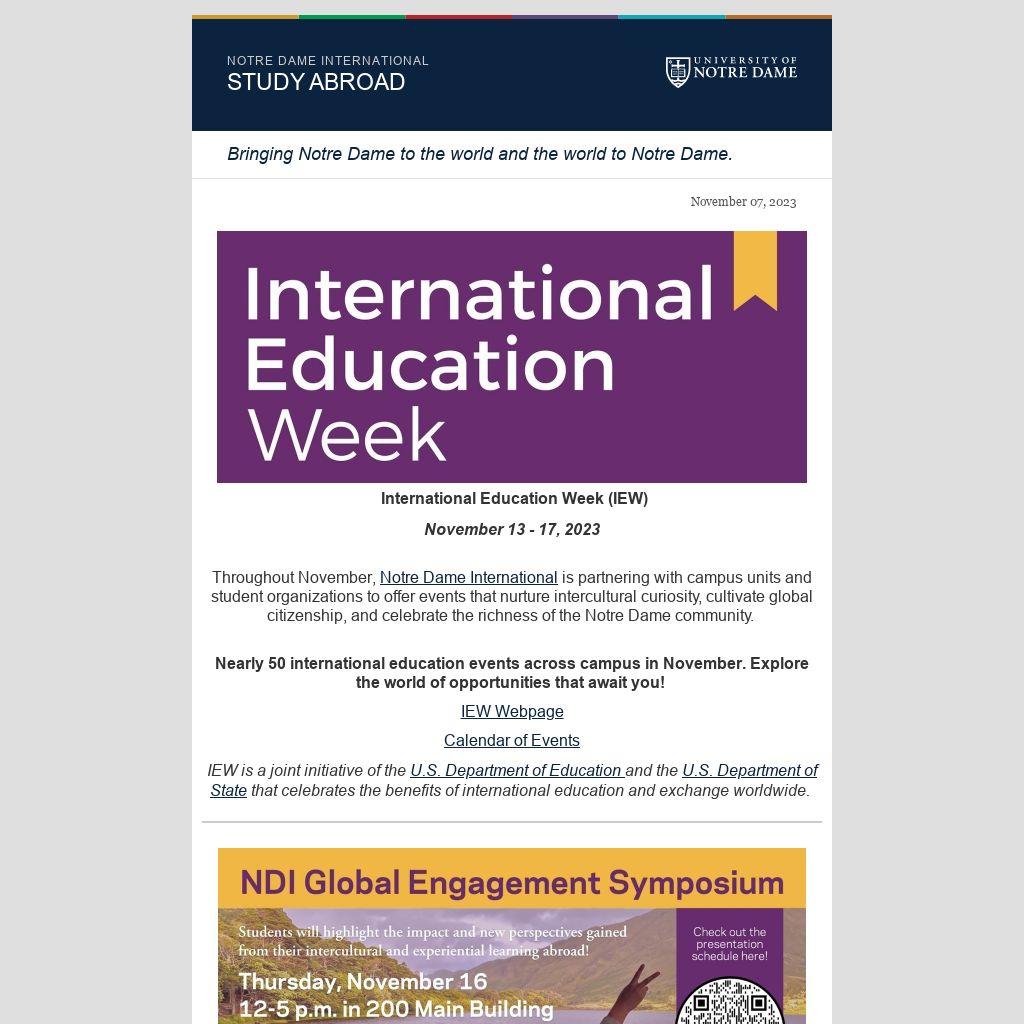Throughout November, Notre Dame International is partnering with campus units and student organizations to offer events that nurture intercultural curiosity, cultivate global citizenship, and celebrate the richness of the Notre Dame community.