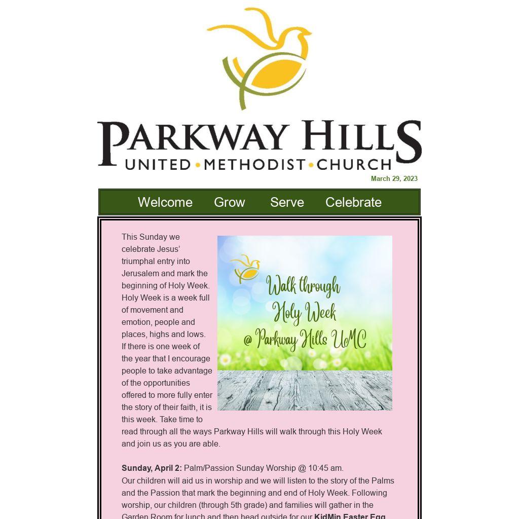 This Sunday we celebrate Jesus’ triumphal entry into Jerusalem and mark the beginning of Holy Week. Holy Week is a week full of movement and emotion, people and places, highs and lows. If there is one week of the year that I encourage people to take advantage of the opportunities offered to more fully enter the story of their faith, it is this week. Take time to read through all the ways Parkway Hills will walk through this Holy Week and join us as you are able.