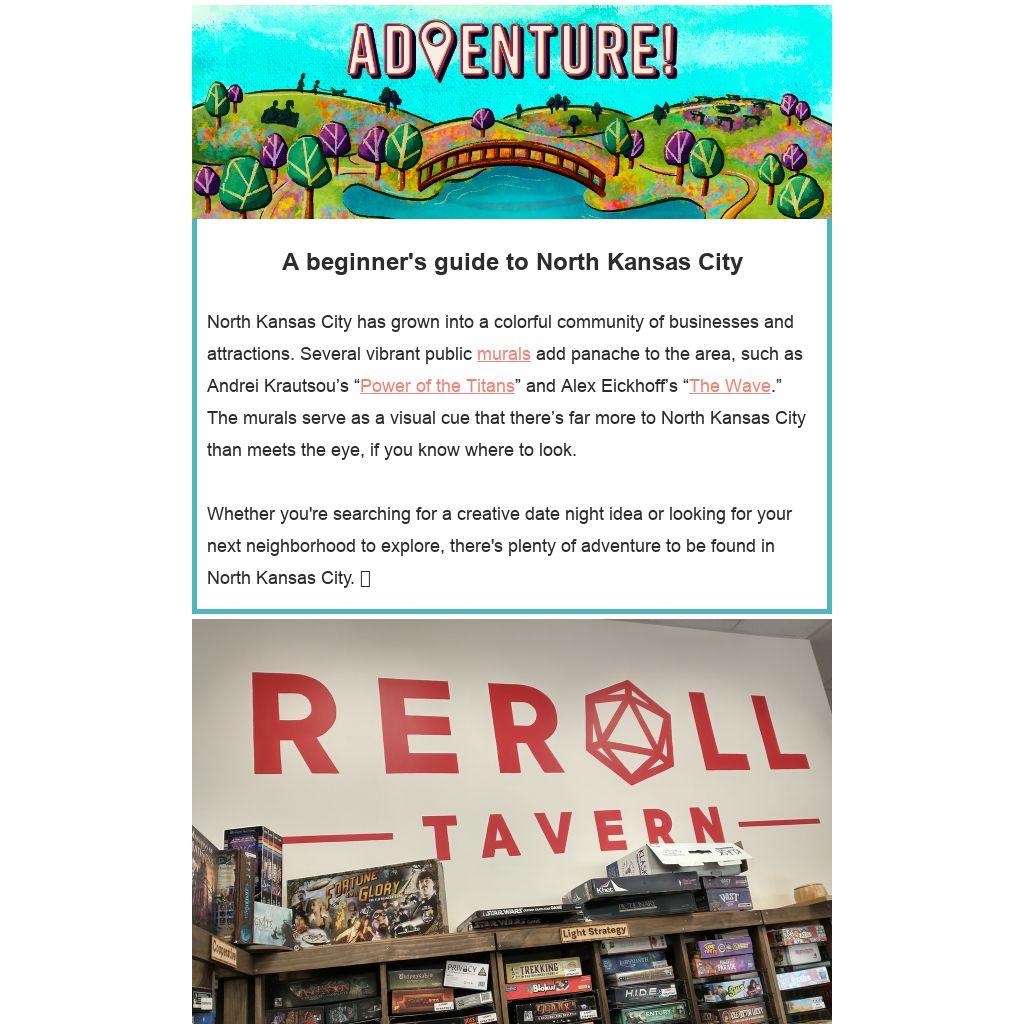 Whether you're searching for a creative date night idea or looking for your next neighborhood to explore, there's plenty of adventure to be found in North Kansas City. 📍