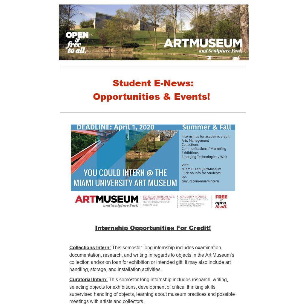 We have a fun opportunity for you to earn community service hours and get a taste of what it is like to work at the art museum!