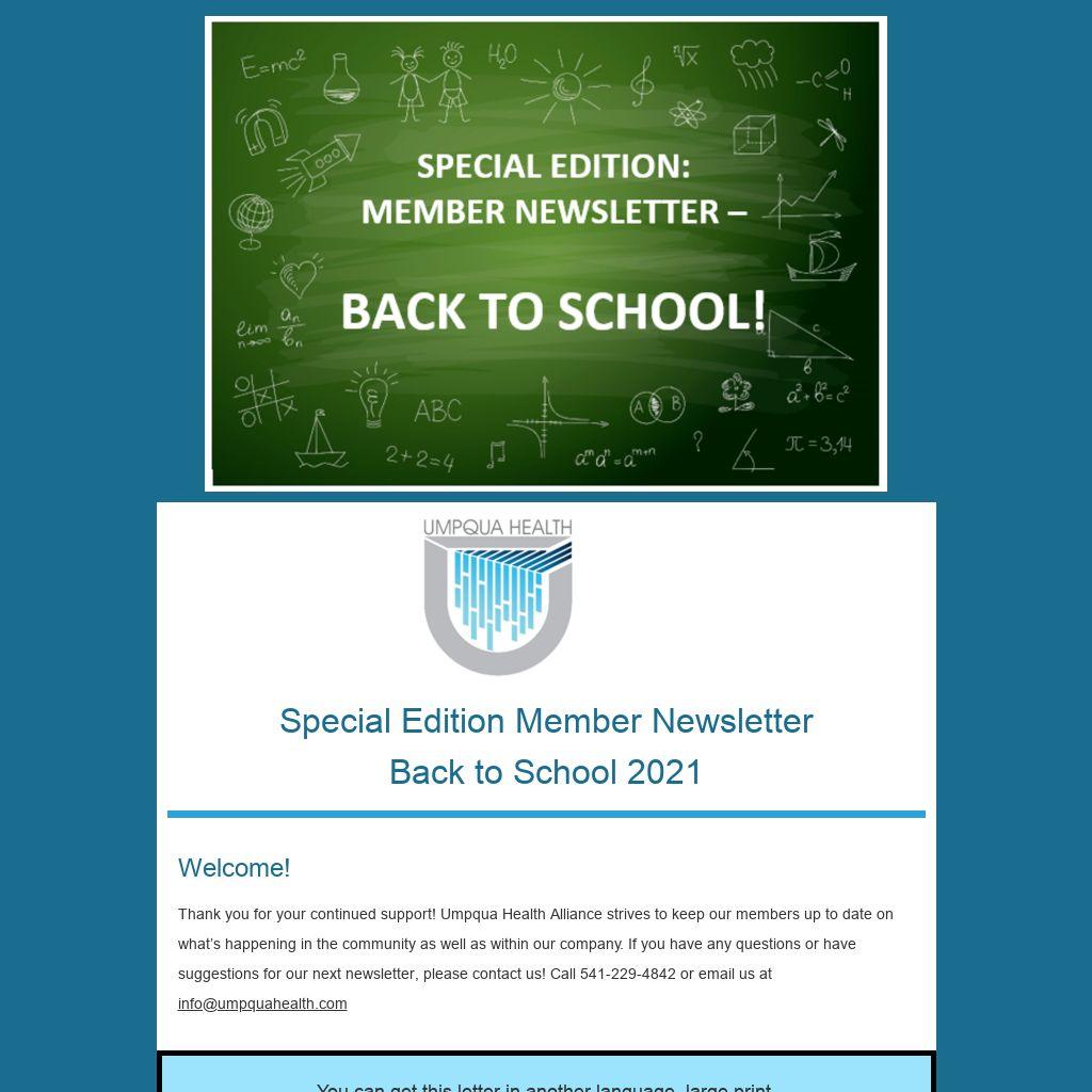 | Special Edition Member Newsletter Back to School 2021