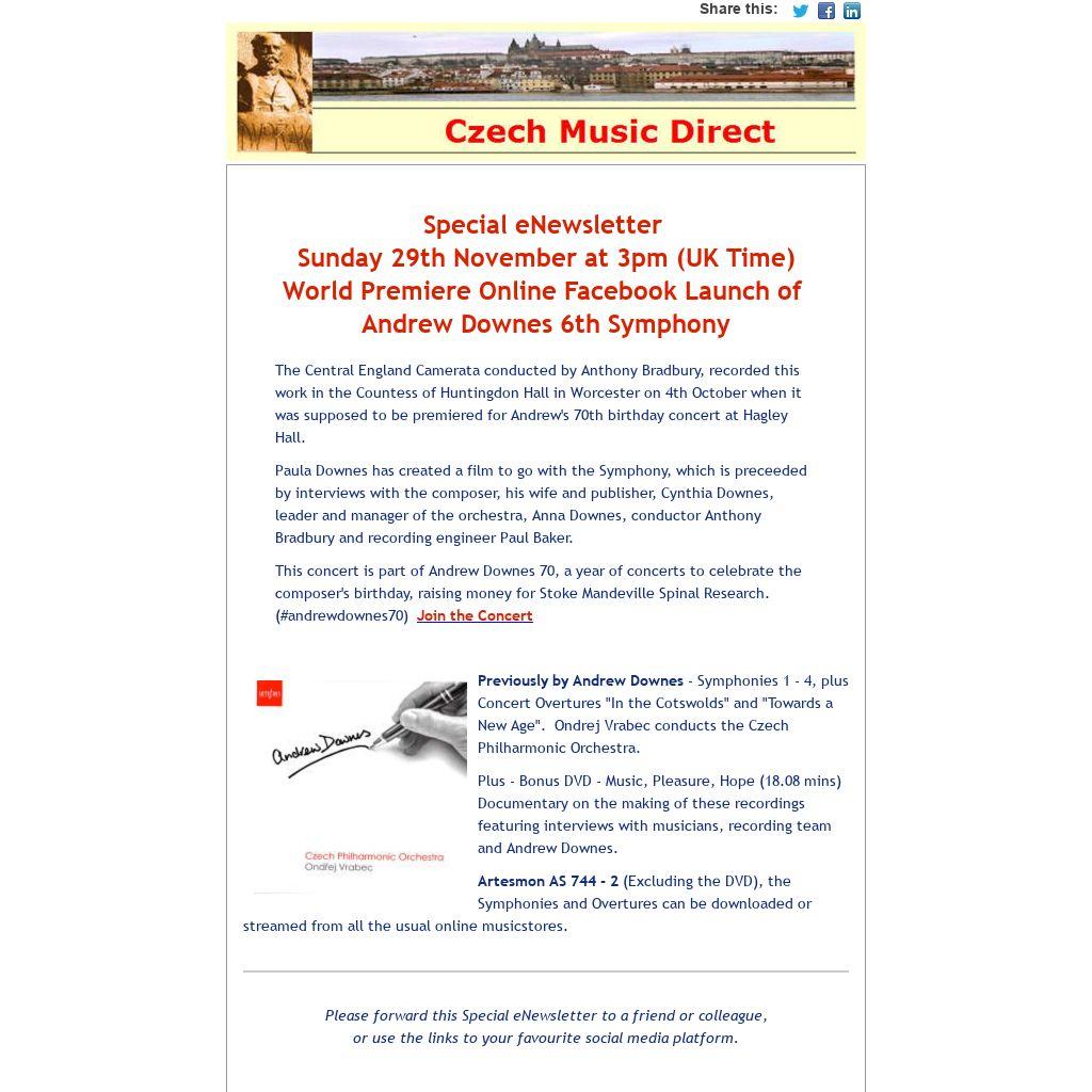 Previously by Andrew Downes - Symphonies 1 - 4, plus Concert Overtures "In the Cotswolds" and "Towards a New Age". Ondrej Vrabec conducts the Czech Philharmonic Orchestra.