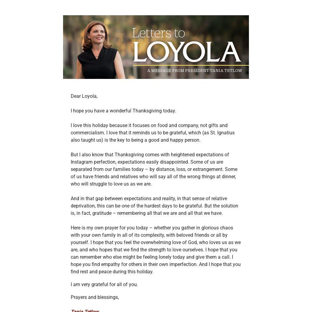 I love this holiday because it focuses on food and company, not gifts and commercialism. I love that it reminds us to be grateful, which (as St. Ignatius also taught us) is the key to being a good and happy person.