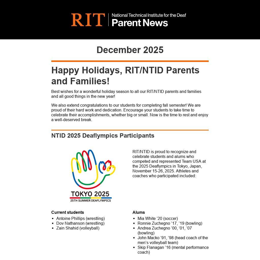 Best wishes for a wonderful holiday season to all our RIT/NTID parents and families and all good things in the new year!