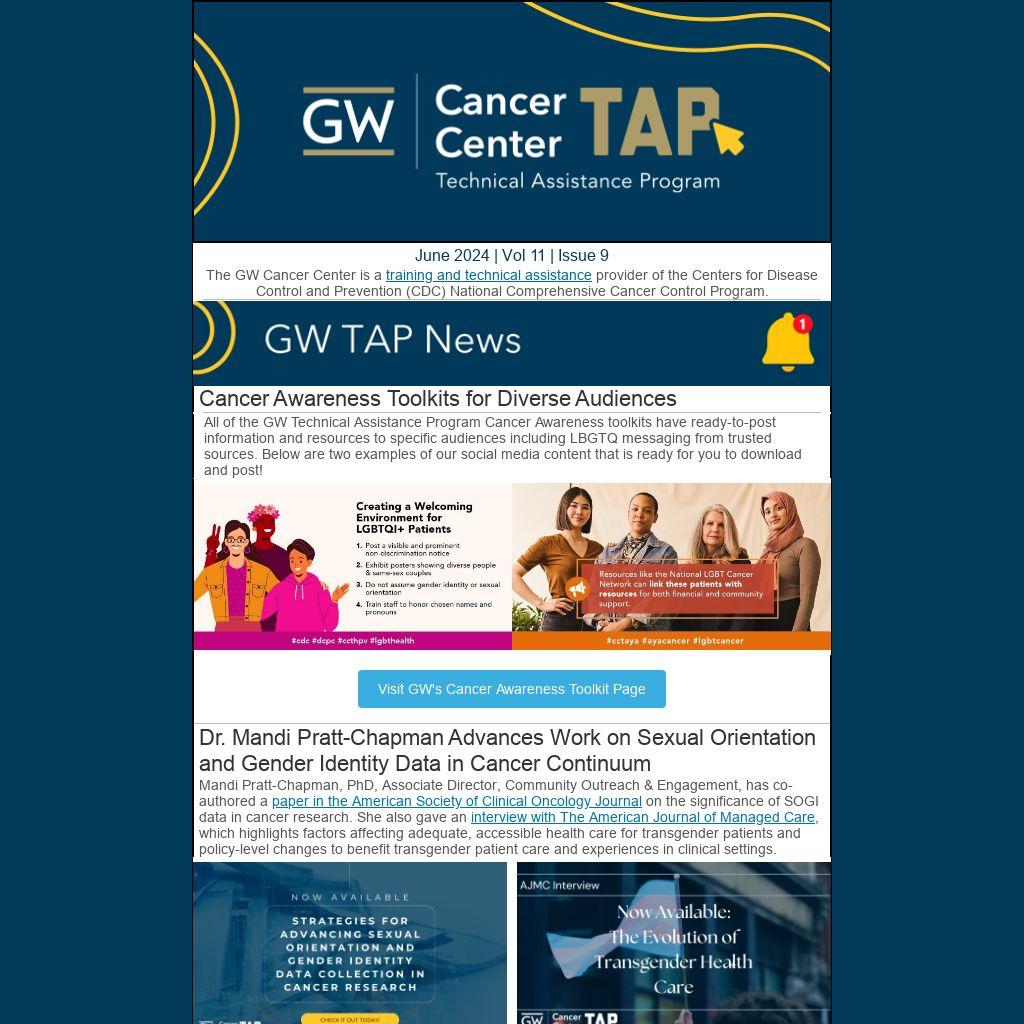 All of the GW Technical Assistance Program Cancer Awareness toolkits have ready-to-post information and resources to specific audiences including LBGTQ messaging from trusted sources. Below are two examples of our social media content that is ready for you to download and post!