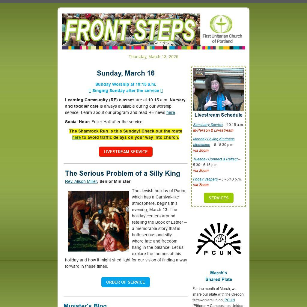Got something for Front Steps? Send in your church-related submission for our weekly publication. Use "Front Steps" as the subject line and submit here.
