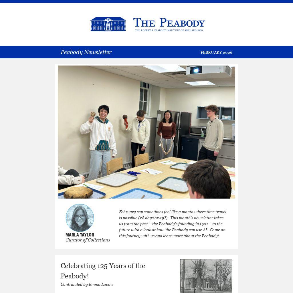 February can sometimes feel like a month where time travel is possible (28 days or 29?). This month’s newsletter takes us from the past – the Peabody’s founding in 1901 – to the future with a look at how the Peabody can use AI. Come on this journey with us and learn more about the Peabody!