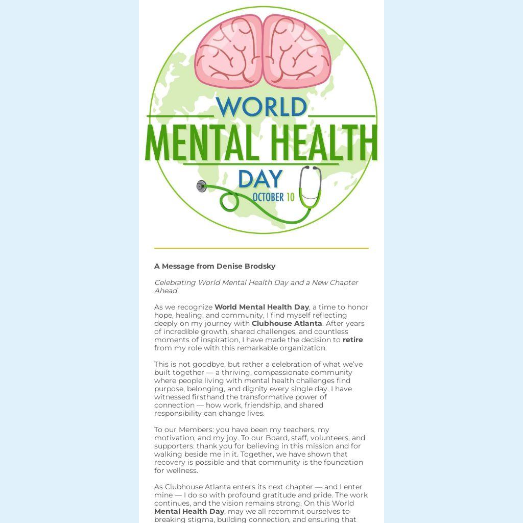 As Clubhouse Atlanta enters its next chapter — and I enter mine — I do so with profound gratitude and pride. The work continues, and the vision remains strong. On this World Mental Health Day, may we all recommit ourselves to breaking stigma, building connection, and ensuring that everyone has a place to belong.
