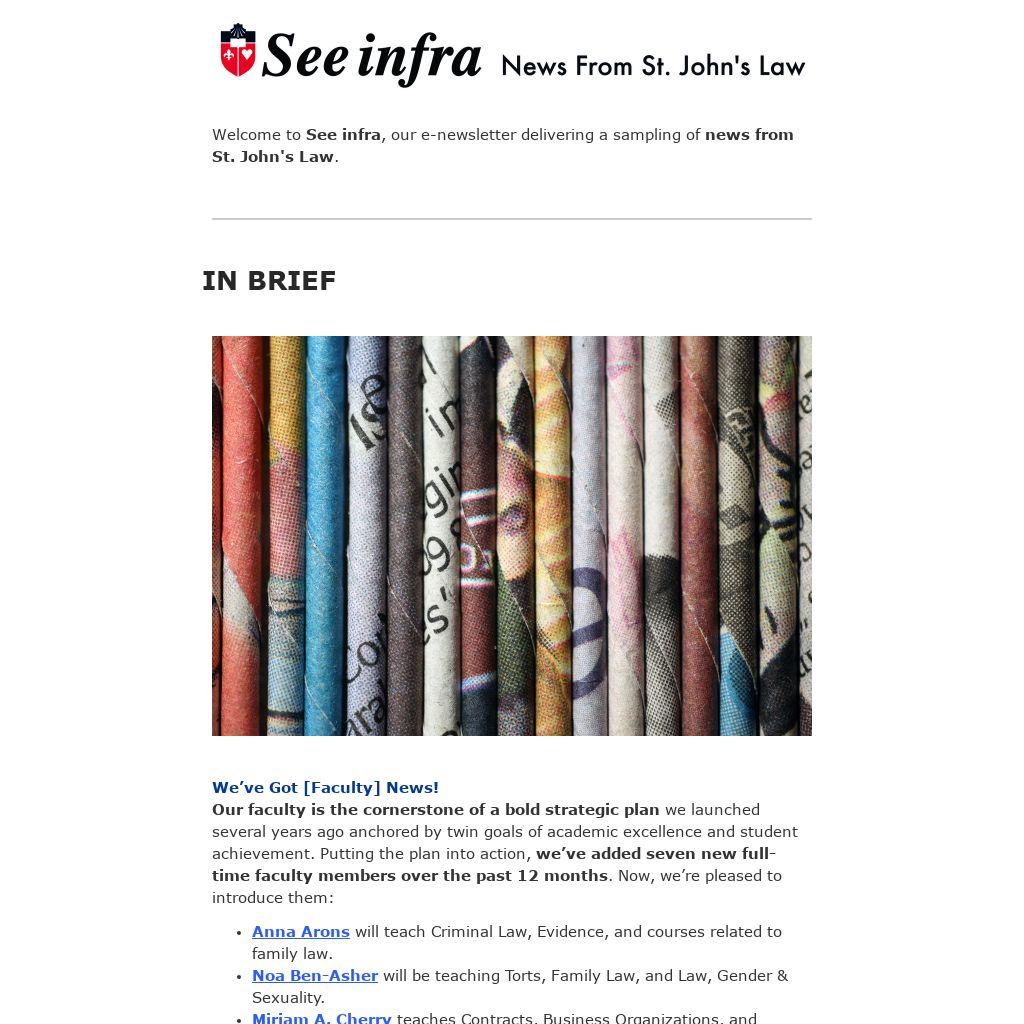 Welcome to See infra, our e-newsletter delivering a sampling of news from St. John's Law.