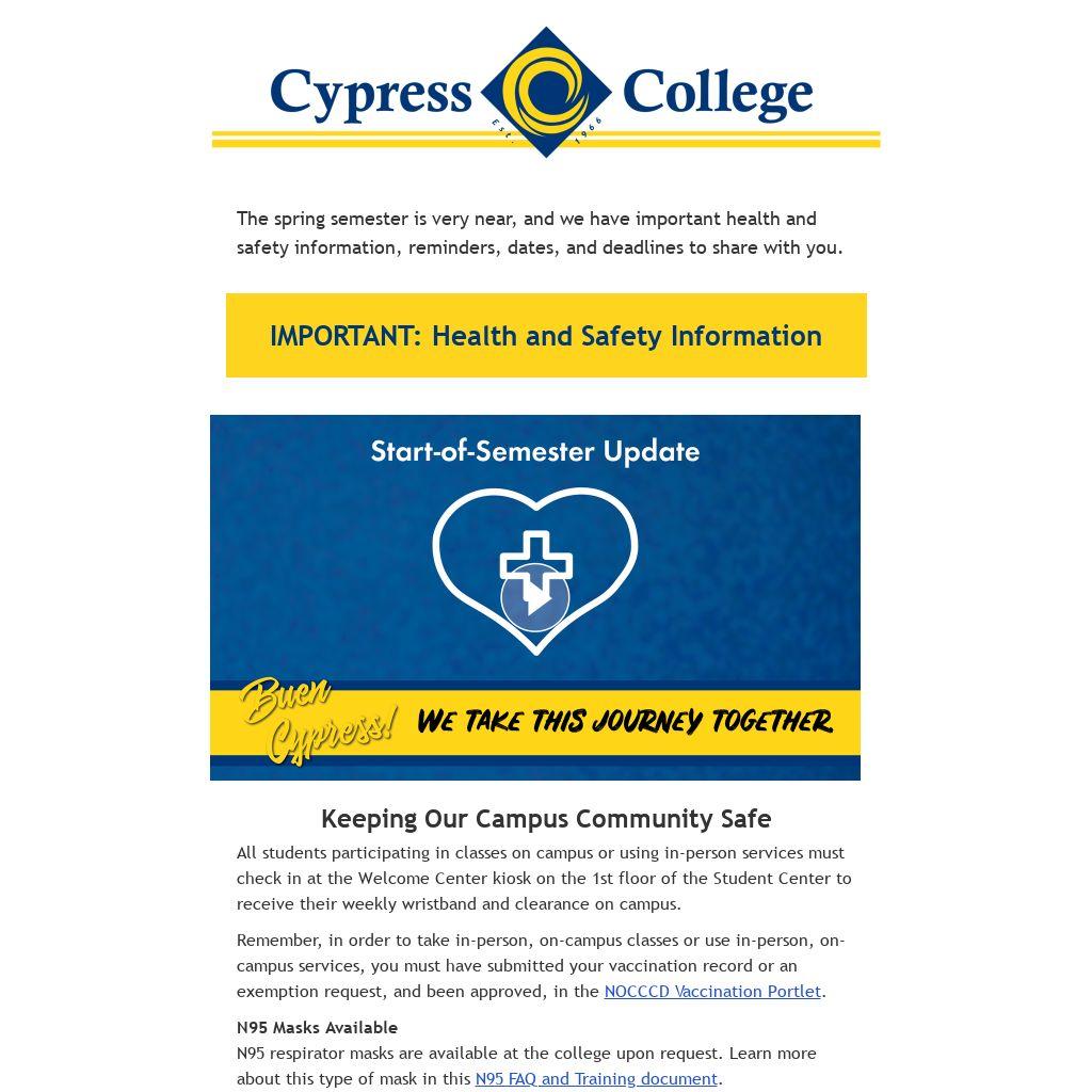 Remember, in order to take in-person, on-campus classes or use in-person, on-campus services, you must have submitted your vaccination record or an exemption request, and been approved, in the NOCCCD Vaccination Portlet.