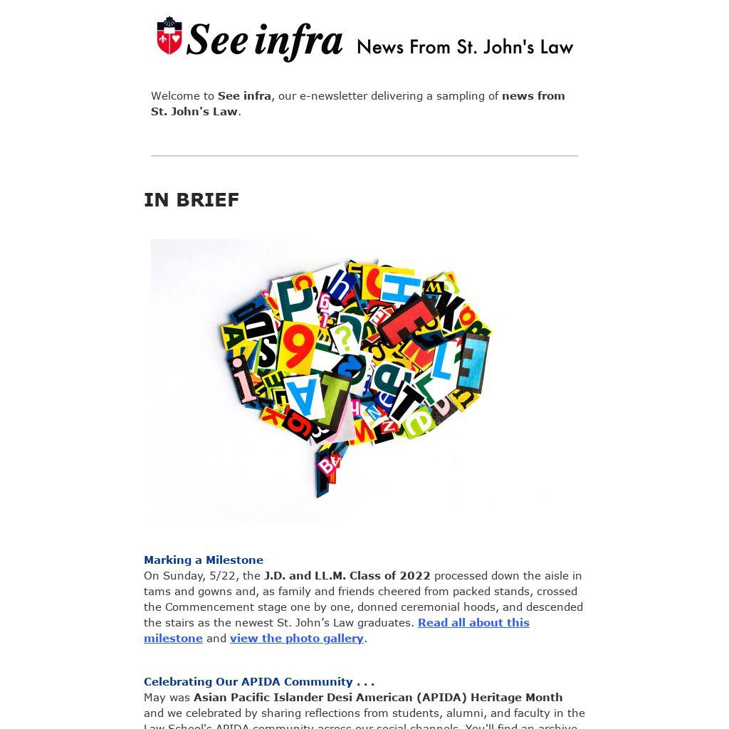 Welcome to See infra, our e-newsletter delivering a sampling of news from St. John's Law.