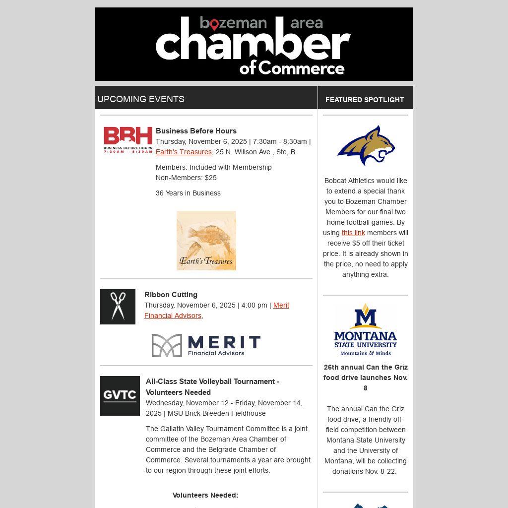 Bobcat Athletics would like to extend a special thank you to Bozeman Chamber Members for our final two home football games. By using this link members will receive $5 off their ticket price. It is already shown in the price, no need to apply anything extra.
