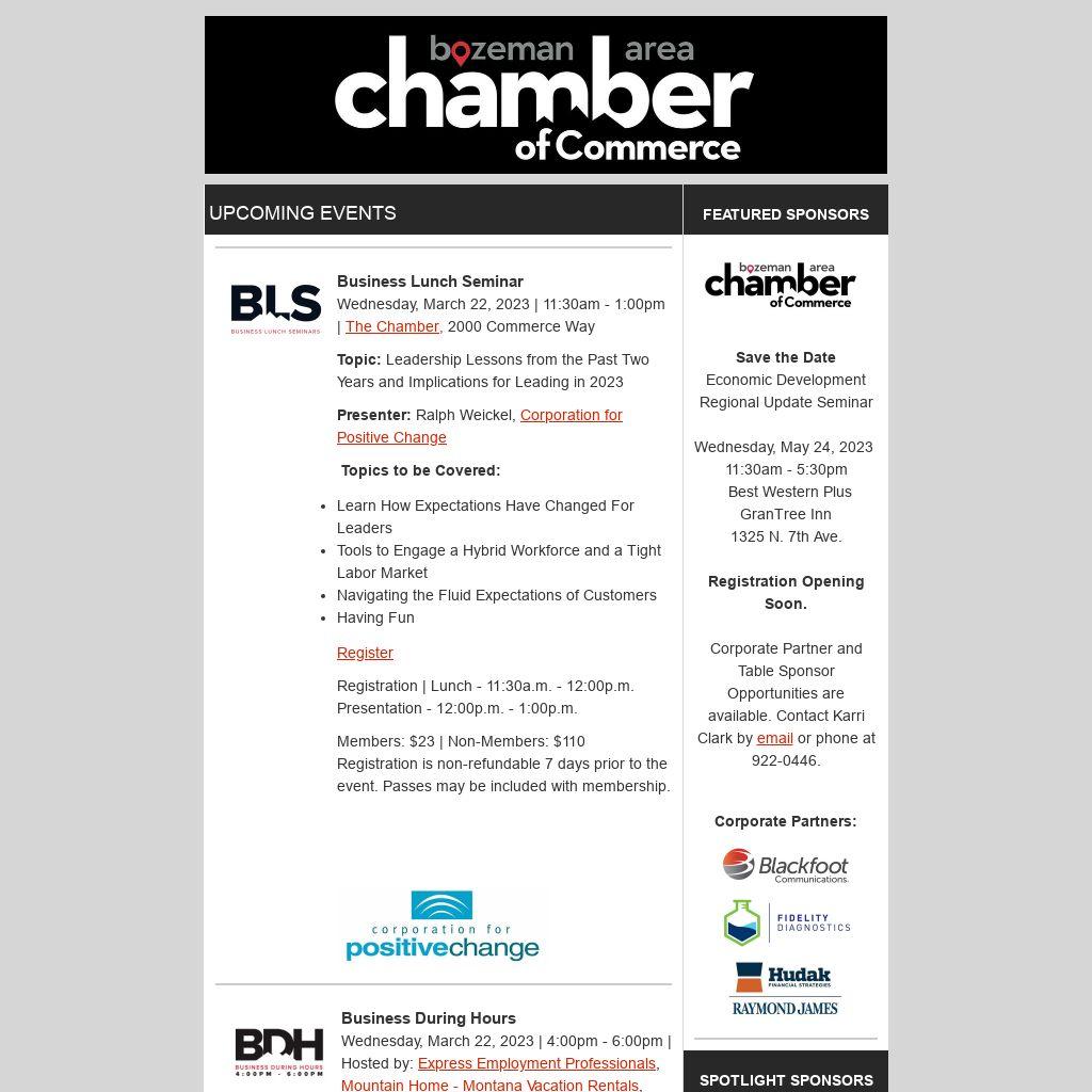 Business Before Hours Thursday, April 6, 2023 | 7:30am - 8:30am | Gallatin College, 705 Osterman Dr.