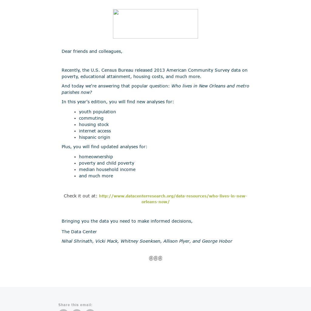 Check it out at: http://www.datacenterresearch.org/data-resources/who-lives-in-new-orleans-now/