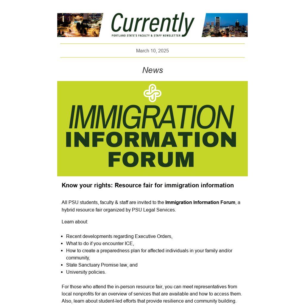 All PSU students, faculty & staff are invited to the Immigration Information Forum, a hybrid resource fair organized by PSU Legal Services.