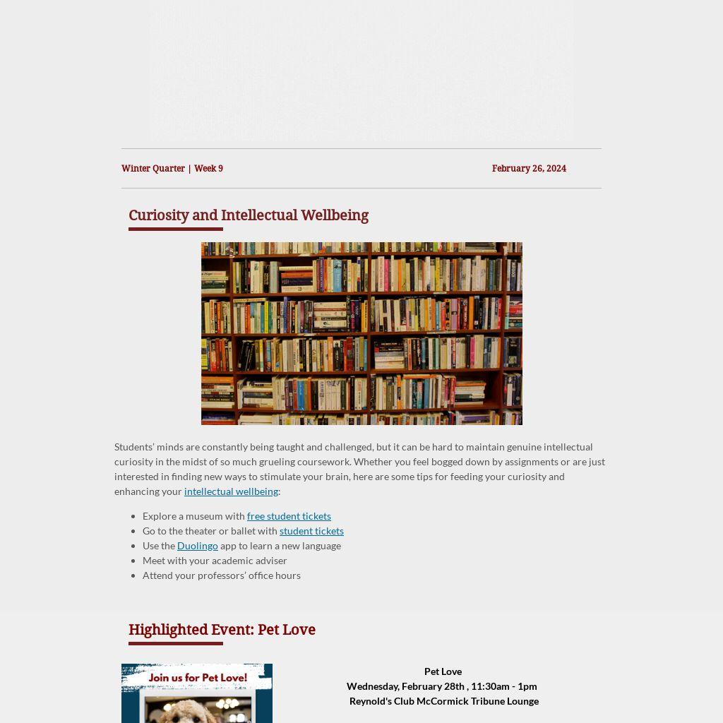Students’ minds are constantly being taught and challenged, but it can be hard to maintain genuine intellectual curiosity in the midst of so much grueling coursework. Whether you feel bogged down by assignments or are just interested in finding new ways to stimulate your brain, here are some tips for feeding your curiosity and enhancing your intellectual wellbeing: