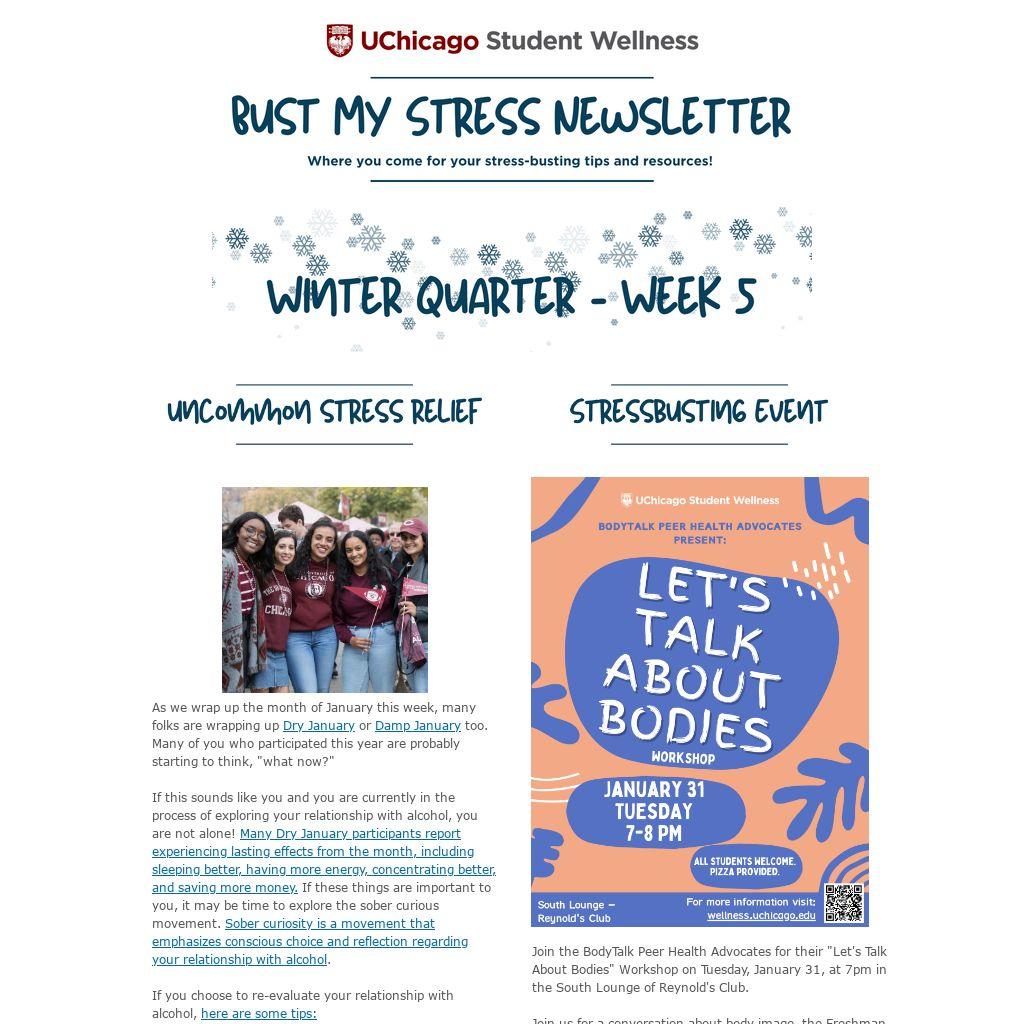 If you feel as if you would like assistance in exploring your alcohol use, check out the offerings from UChicago Student Wellness, including: BASICS, the Student Recovery Group, or a substance use evaluation.