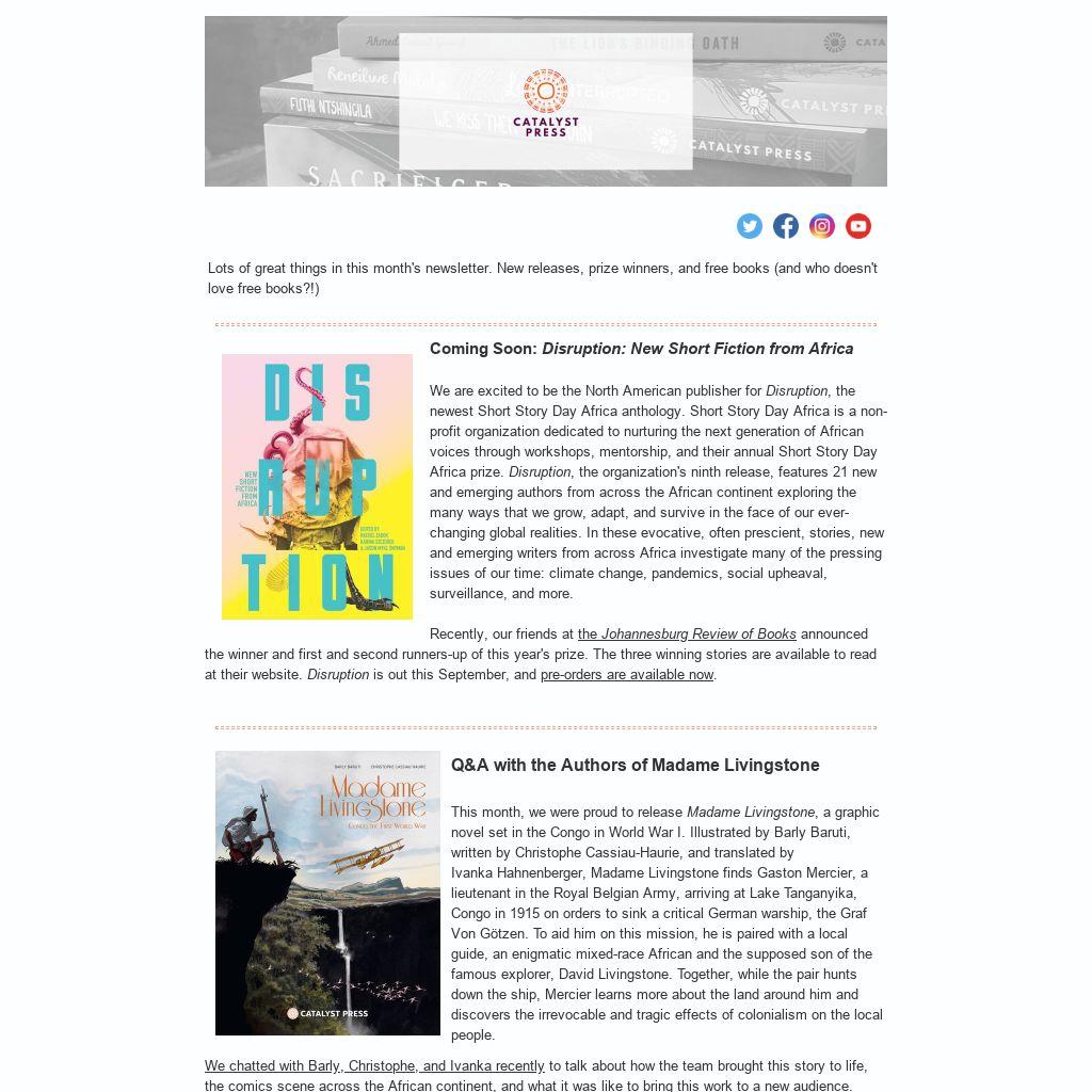 This month, we were proud to release Madame Livingstone, a graphic novel set in the Congo in World War I. Illustrated by Barly Baruti, written by Christophe Cassiau-Haurie, and translated by Ivanka Hahnenberger, Madame Livingstone finds Gaston Mercier, a lieutenant in the Royal Belgian Army, arriving at Lake Tanganyika, Congo in 1915 on orders to sink a critical German warship, the Graf Von Götzen. To aid him on this mission, he is paired with a local guide, an enigmatic mixed-race African and the supposed son of the famous explorer, David Livingstone. Together, while the pair hunts down the ship, Mercier learns more about the land around him and discovers the irrevocable and tragic effects of colonialism on the local people.