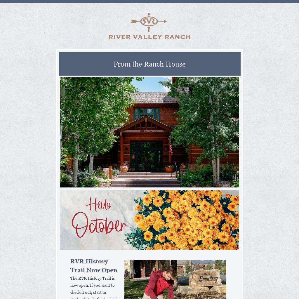 RVR History Trail Now Open The RVR History Trail is now open. If you want to check it out, start in Orchard Park, the beginning of the 2.7-mile History Trail loop. The ten panels on the History trail tell the story of how RVR evolved from being a home to the nomadic Ute Indian tribes of the 1400s, to the European settlers and homesteaders in the 1800s, to development of RVR homes and a golf course in the late 1990s.