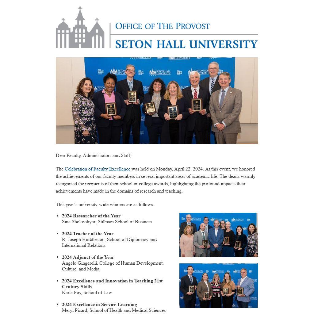 We strongly encourage faculty to apply for merit, particularly those faculty who have not yet applied, as we hope to be able to grant more awards this year. We will continue to enhance our means for rewarding, retaining and celebrating scholarship, teaching and service excellence at Seton Hall.