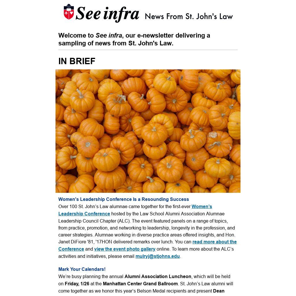 Welcome to See infra, our e-newsletter delivering a sampling of news from St. John's Law. |