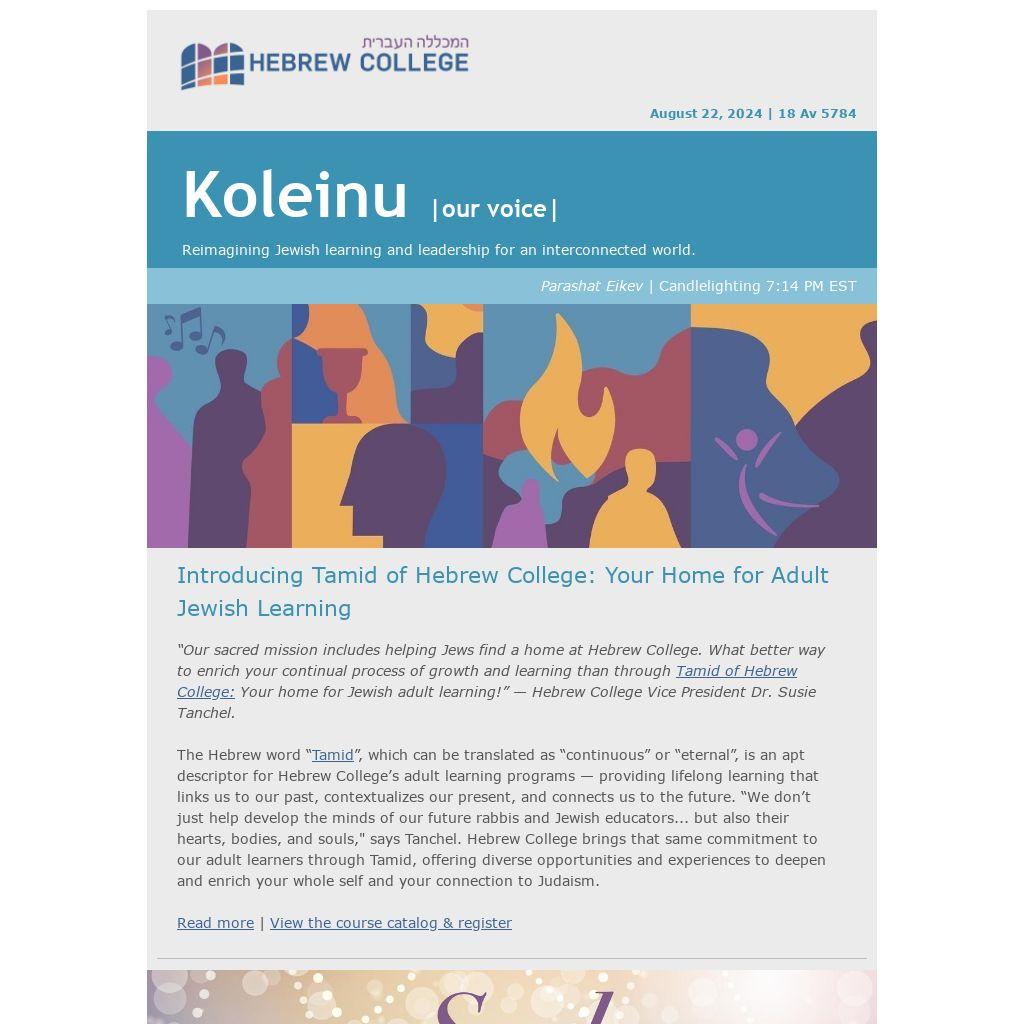 “Our sacred mission includes helping Jews find a home at Hebrew College. What better way to enrich your continual process of growth and learning than through Tamid of Hebrew College: Your home for Jewish adult learning!” — Hebrew College Vice President Dr. Susie Tanchel.