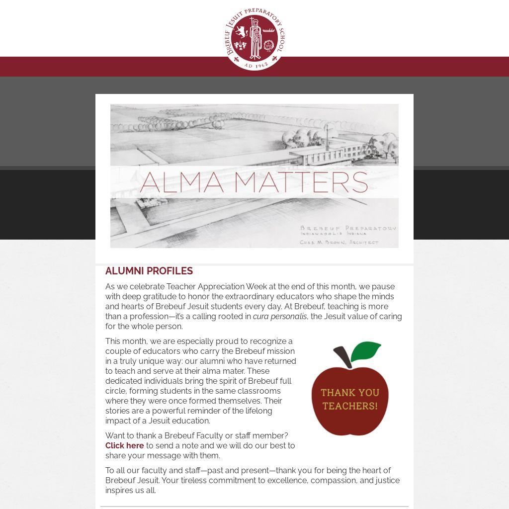 Want to thank a Brebeuf Faculty or staff member? Click here to send a note and we will do our best to share your message with them.
