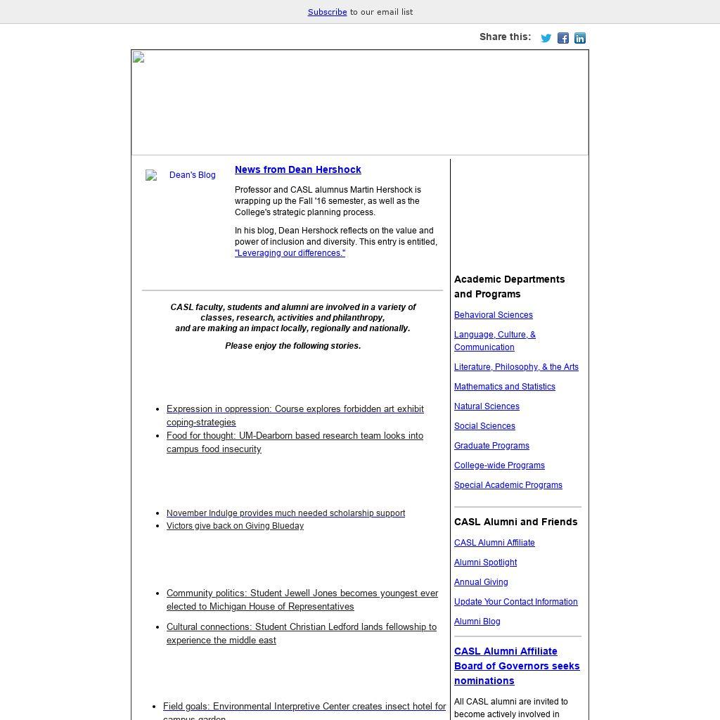 - Members of the CASL Dean's Advisory Council offered a challenge of $11,000 to raise funds for the UM-Dearborn CASL Student "Get to Graduation" Fund. Every year CASL students face financial barriers or unanticipated expenses that cause them to struggle to stay in school. Your gift helps eliminate those barriers, gets students to their graduation and shows them the difference philanthropy can make.