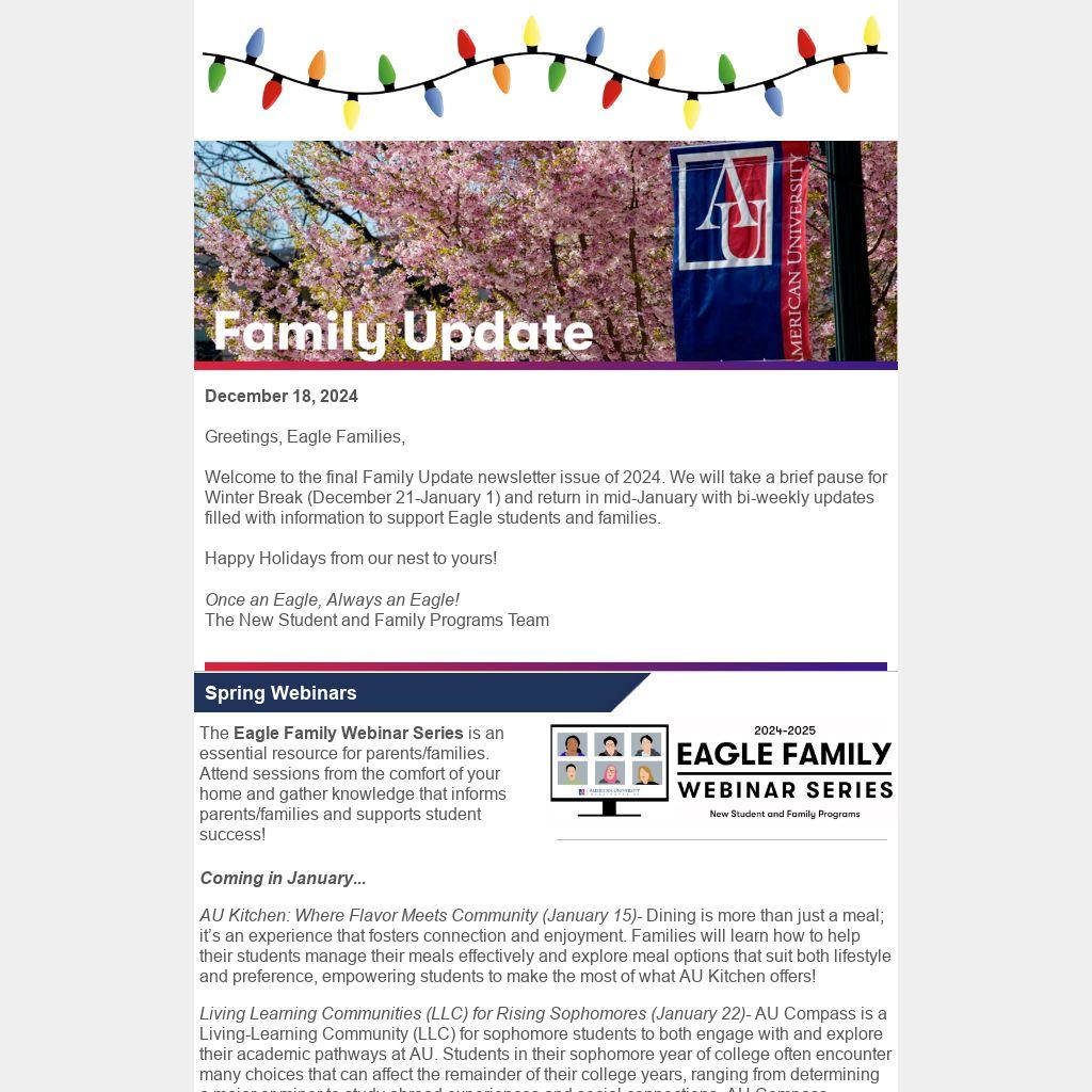 Welcome to the final Family Update newsletter issue of 2024. We will take a brief pause for Winter Break (December 21-January 1) and return in mid-January with bi-weekly updates filled with information to support Eagle students and families.