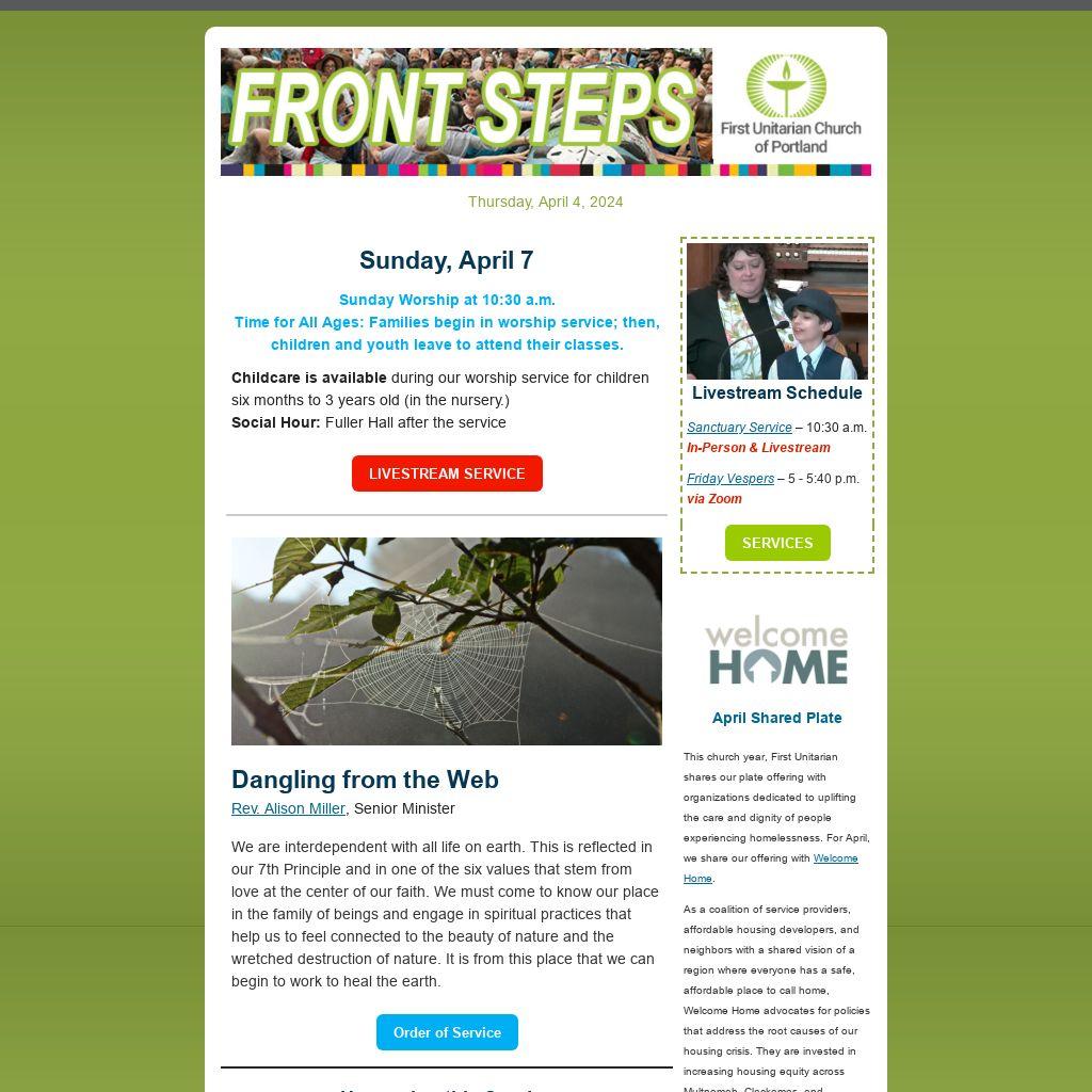 Have a Submission for Front Steps?If you have a church-related submission you would like published in our weekly Front Steps, please submit it here with the subject line “Front Steps” or "Announcement."