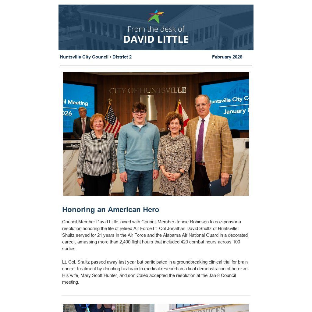 Feb. 26: City Council Meeting, 5:30 p.m., Huntsville City Hall