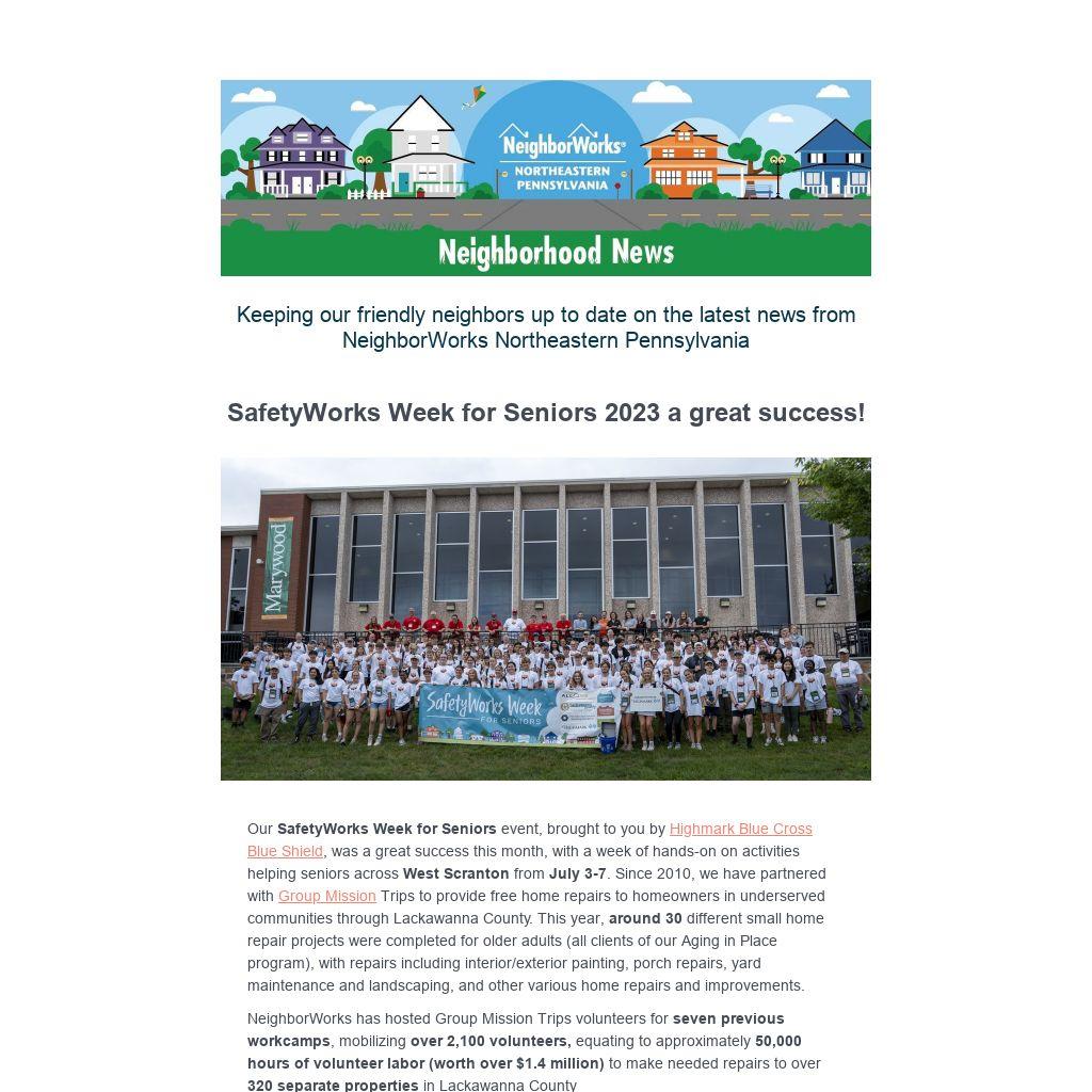 NeighborWorks has hosted Group Mission Trips volunteers for seven previous workcamps, mobilizing over 2,100 volunteers, equating to approximately 50,000 hours of volunteer labor (worth over $1.4 million) to make needed repairs to over 320 separate properties in Lackawanna County