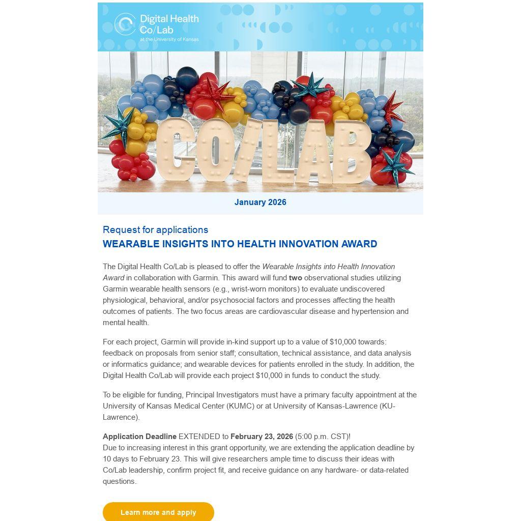 We’d love to feature your opportunities or highlights in our newsletter! Share your updates with us at DigitalHealthCoLab@kumc.edu.