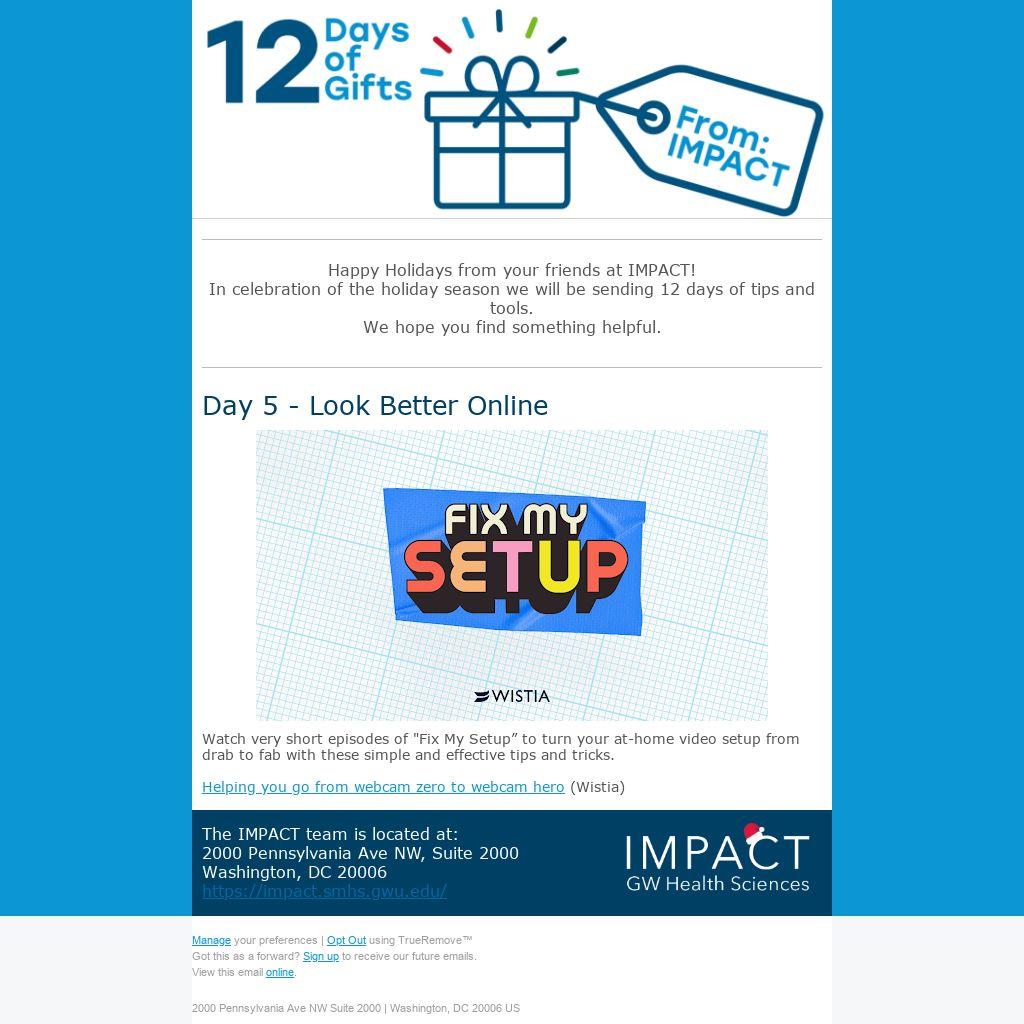 In celebration of the holiday season we will be sending 12 days of tips and tools.