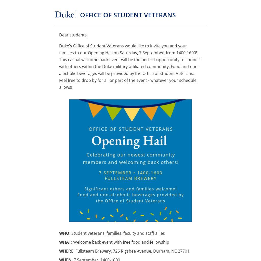 Who: Student veterans, families, faculty and staff allies