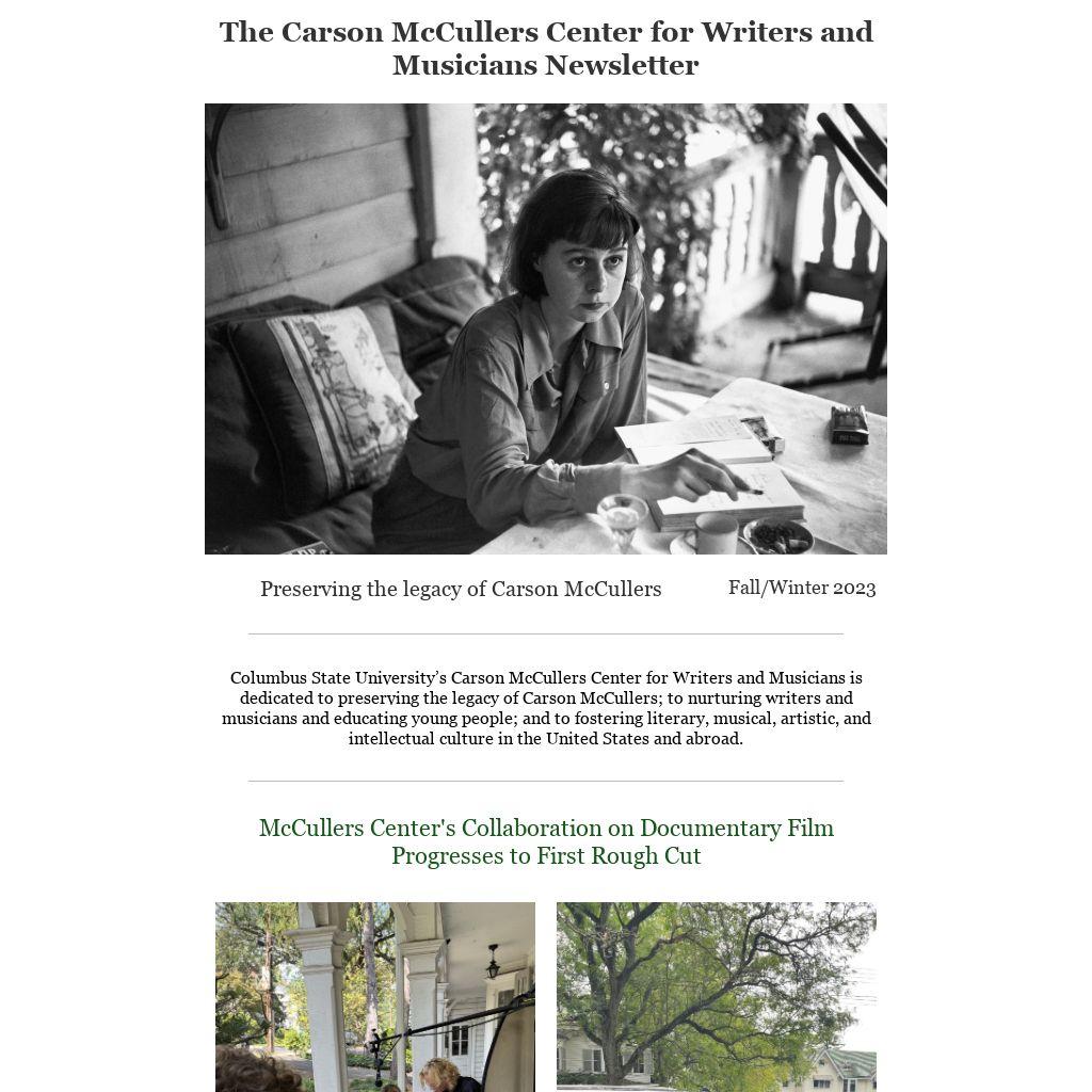 The Carson McCullers Center for Writers and Musicians Newsletter |