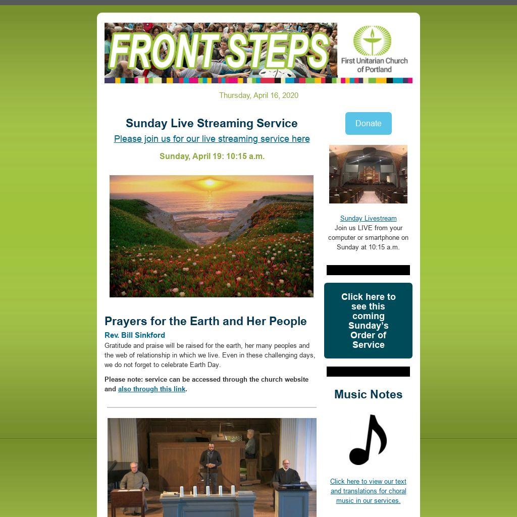 If you have an item you’d like published in our weekly Front Steps (eNews) or the Sunday Bulletin, please submit it here and include in the subject line “For eNews” –or– “For Sunday Bulletin” –or– “For eNews and Sunday Bulletin.”