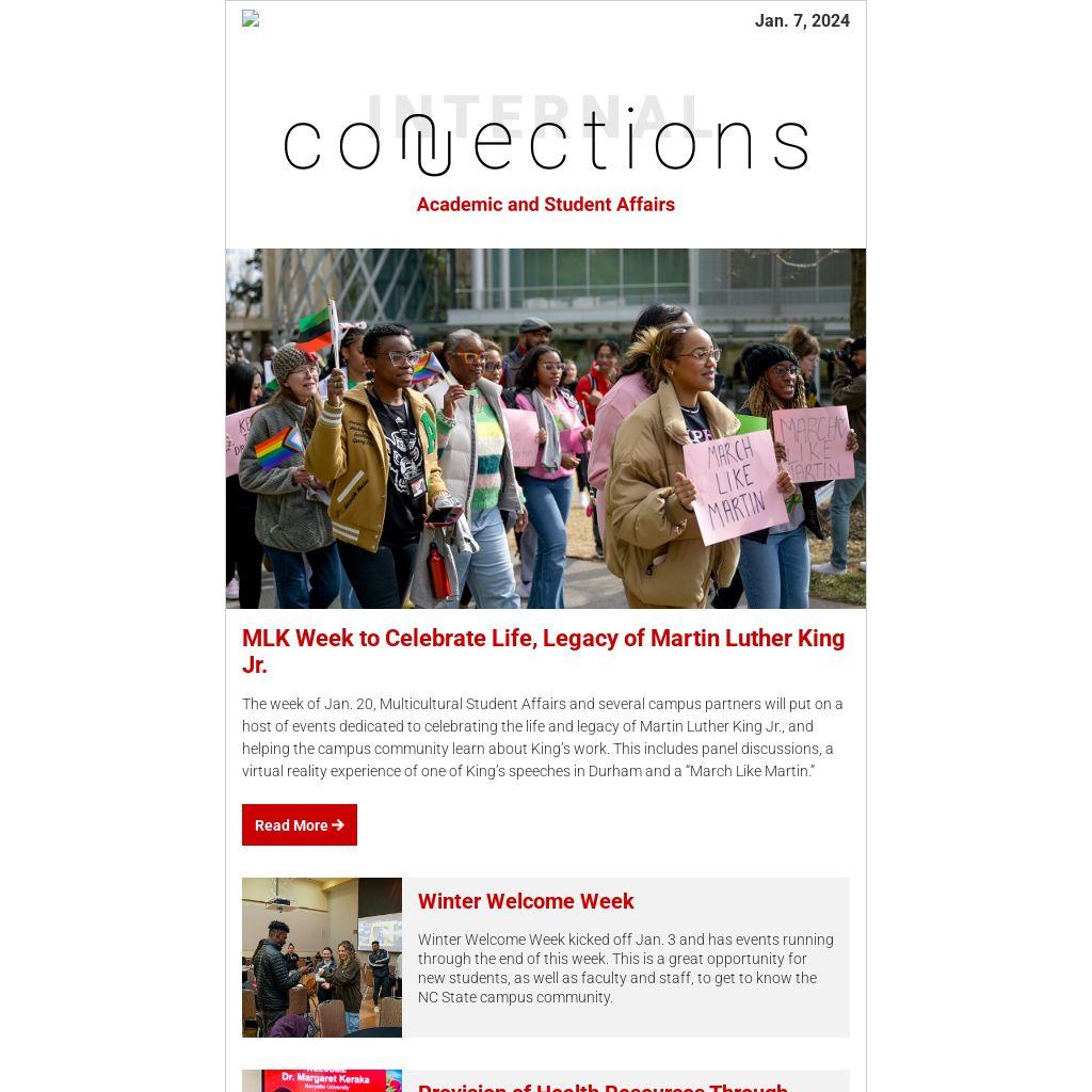 The week of Jan. 20, Multicultural Student Affairs and several campus partners will put on a host of events dedicated to celebrating the life and legacy of Martin Luther King Jr., and helping the campus community learn about King’s work. This includes panel discussions, a virtual reality experience of one of King’s speeches in Durham and a “March Like Martin.”