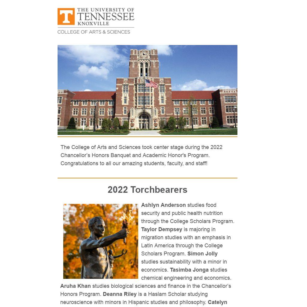 The College of Arts and Sciences took center stage during the 2022 Chancellor’s Honors Banquet and Academic Honor's Program. Congratulations to all our amazing students, faculty, and staff!