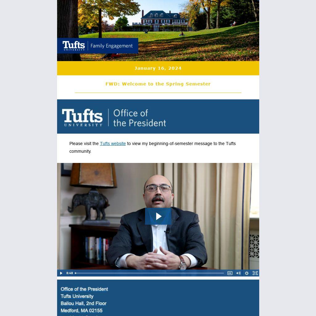 Please visit the Tufts website to view my beginning-of-semester message to the Tufts community.