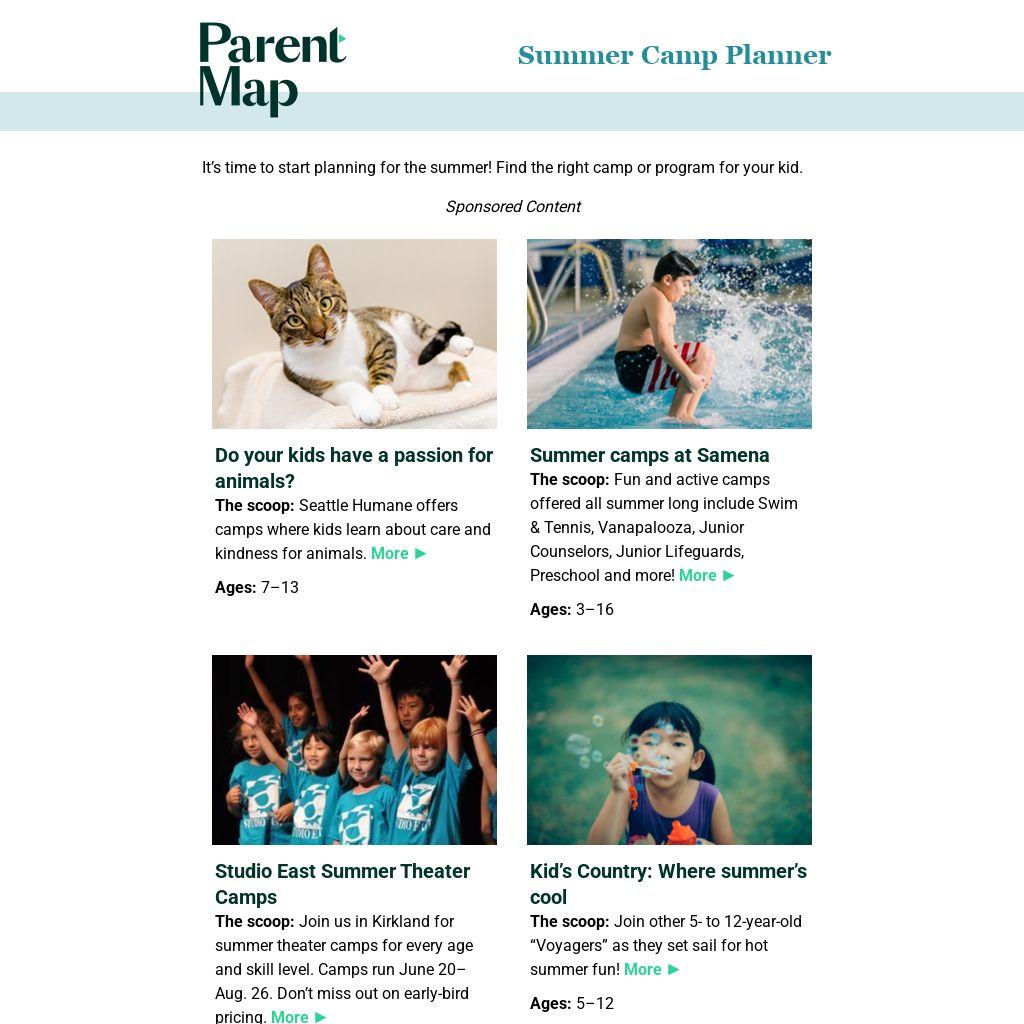 Join ParentMap's free virtual Camp Fair on Saturday, March 5, to browse virtual camp booths, attend live camp info sessions, enjoy free kids’ demo sessions and enter to win sweet prizes. You can even save money with exclusive camp offers and discounts!