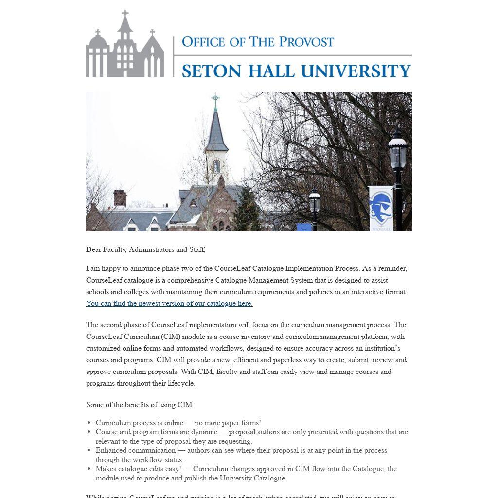 The second phase of CourseLeaf implementation will focus on the curriculum management process. The CourseLeaf Curriculum (CIM) module is a course inventory and curriculum management platform, with customized online forms and automated workflows, designed to ensure accuracy across an institution’s courses and programs. CIM will provide a new, efficient and paperless way to create, submit, review and approve curriculum proposals. With CIM, faculty and staff can easily view and manage courses and programs throughout their lifecycle.