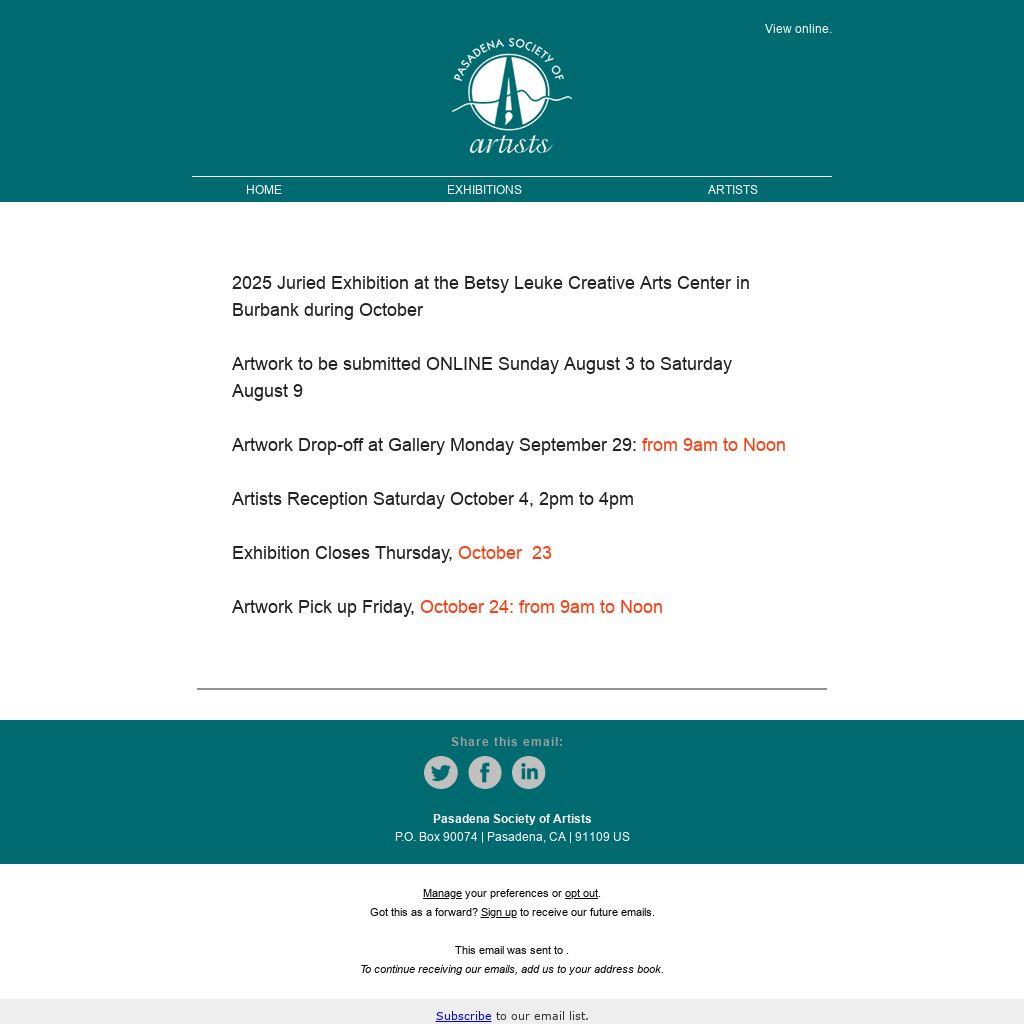 2025 Juried Exhibition at the Betsy Leuke Creative Arts Center in Burbank during October