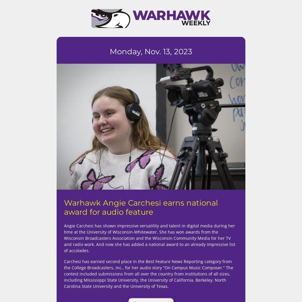 Warhawk Angie Carchesi earns national award for audio feature |