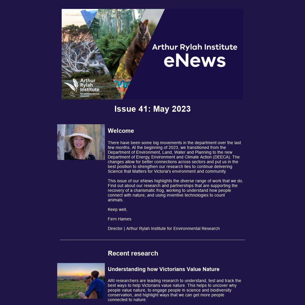 They feature an update on ARI's bat research, results from surveys tracking forest recovery in the Dandenong Ranges after windstorms, and insights into the effectiveness of River Blackfish translocations.