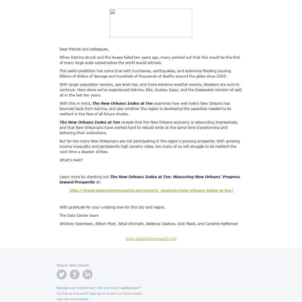 Learn more by checking out The New Orleans Index at Ten: Measuring New Orleans’ Progress toward Prosperity at: