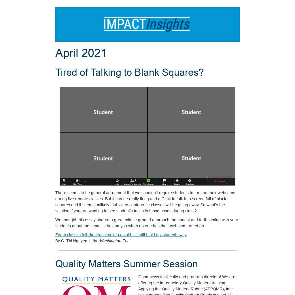 The IMPACT team has noticed an uptick in this error. Considering that many courses have Youtube videos embedded, we thought we would share this article with troubleshooting tips.“YouTube video loading errors most of the time appear due to poor Internet connection or browser issues.” We’ve had some success with clearing the browser cache and cookies, and allowing cookies for Youtube and Blackboard.