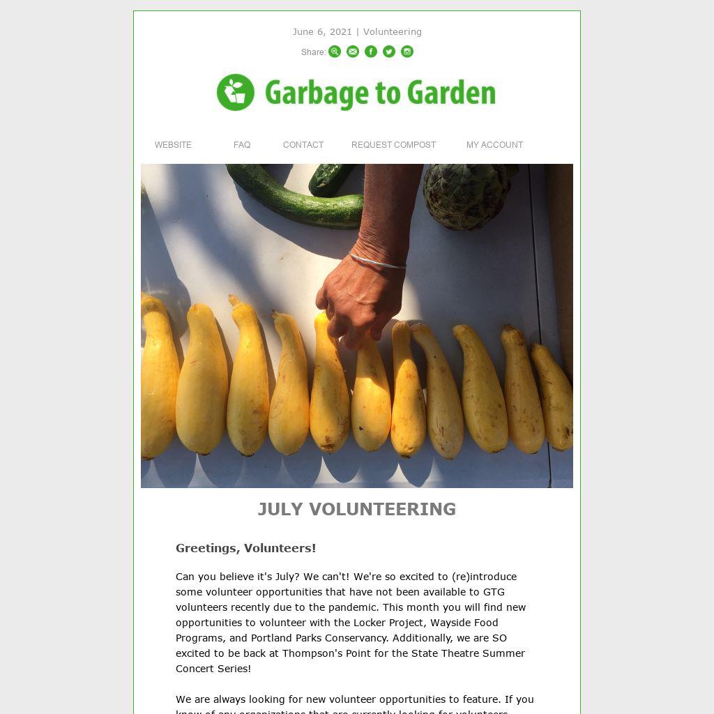 Can you believe it's July? We can't! We're so excited to (re)introduce some volunteer opportunities that have not been available to GTG volunteers recently due to the pandemic. This month you will find new opportunities to volunteer with the Locker Project, Wayside Food Programs, and Portland Parks Conservancy. Additionally, we are SO excited to be back at Thompson's Point for the State Theatre Summer Concert Series!