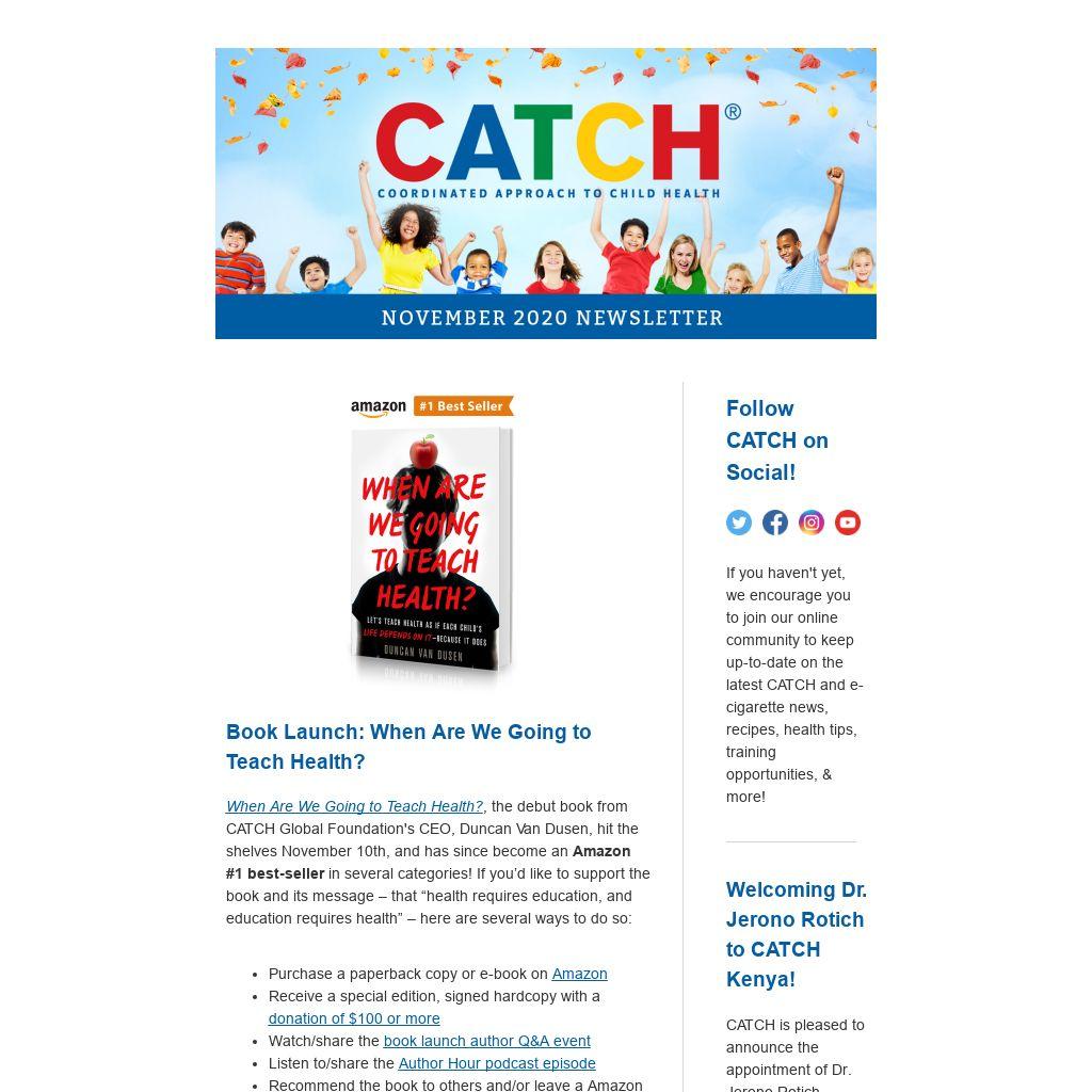 When Are We Going to Teach Health?, the debut book from CATCH Global Foundation's CEO, Duncan Van Dusen, hit the shelves November 10th, and has since become an Amazon #1 best-seller in several categories! If you’d like to support the book and its message – that “health requires education, and education requires health” – here are several ways to do so: